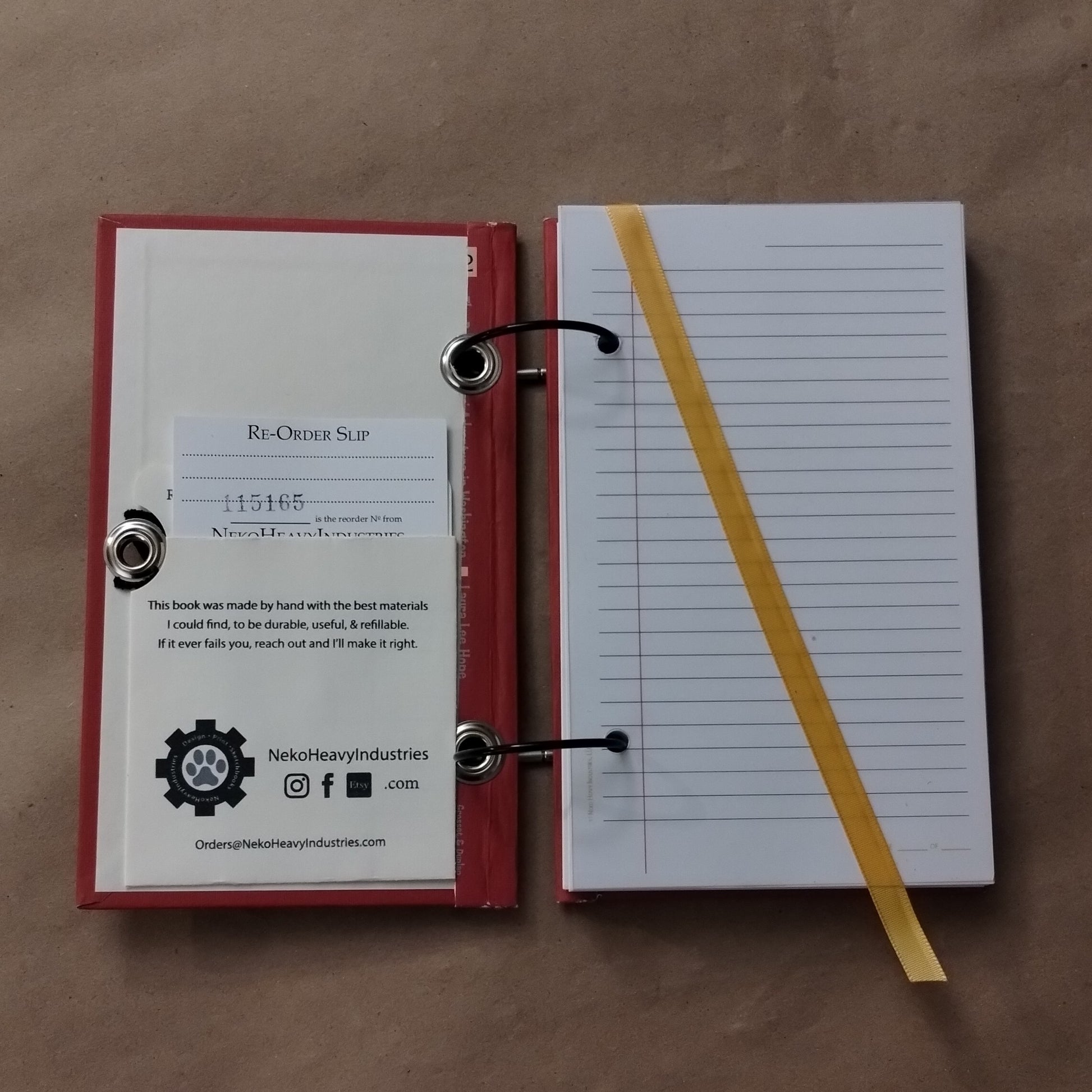 This lined journal crafted from a vintage book is filled with premium, artist-grade paper, custom designed to compliment its covers. The single-sided print allows for full-width blank or lined spreads, perfect for illustrations, diagrams and free thought. The openable binding made of nylon-coated, braided stainless steel won't open unless you want it to and allows pages to be re-ordered and refilled. Secure, elastic closure keeps your drawings and writing safe.