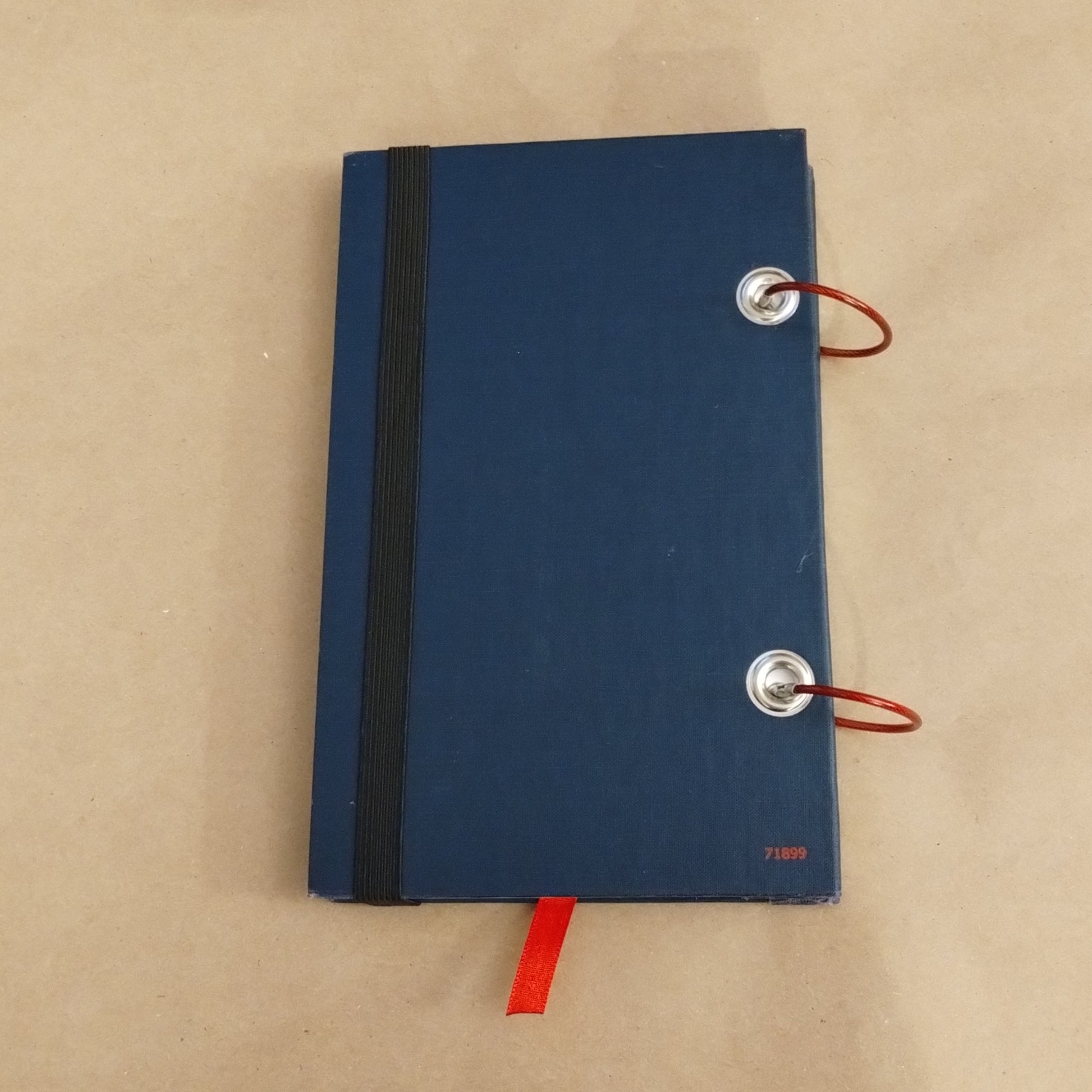 This lined journal crafted from a vintage book is filled with premium, artist-grade paper, custom designed to compliment its covers. The single-sided print allows for full-width blank or lined spreads, perfect for illustrations, diagrams and free thought. The openable binding made of nylon-coated, braided stainless steel won't open unless you want it to and allows pages to be re-ordered and refilled. Secure, elastic closure keeps your drawings and writing safe.