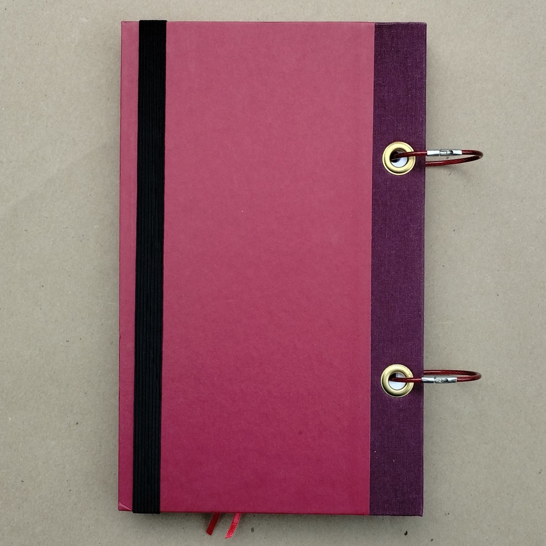 This lined journal crafted from a vintage book is filled with premium, artist-grade paper, custom designed to compliment its covers. The single-sided print allows for full-width blank or lined spreads, perfect for illustrations, diagrams and free thought. The openable binding made of nylon-coated, braided stainless steel won't open unless you want it to and allows pages to be re-ordered and refilled. Secure, elastic closure keeps your drawings and writing safe.
